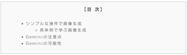 文章だけでは伝えきれない発想を、視覚的に表現できるからです。写真や絵が苦手な人でも、思い描くイメージを簡単に画像化できてしまうのが Geminiの魅力です。